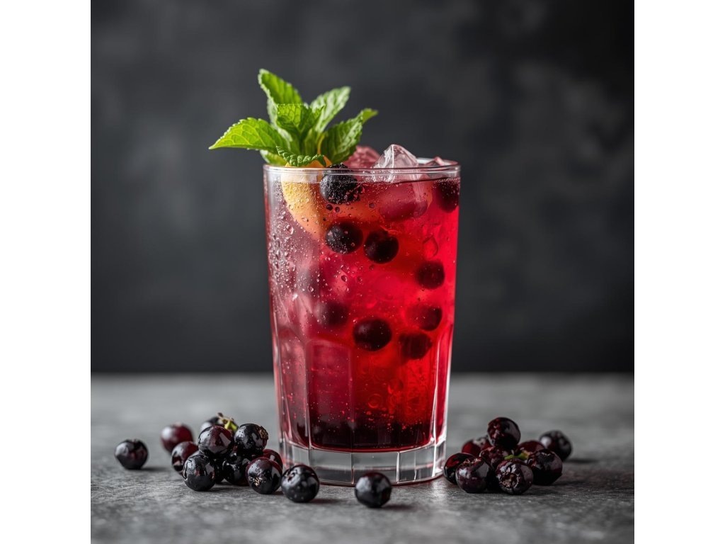 - Přidejte 40 ml sirupu z černého rybízu.